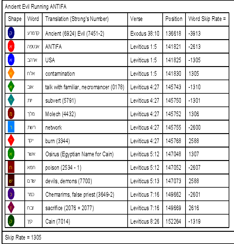In this Bible Code, we see that Ancient Evil under the demon-gods Osirus (AKA Cain) and Molech (the elohim of fire that people used to sacrifice their firstborn children to) with the assistance of other demons and the Chemarims (false priests using necromancy as a communications medium) have brought ANTIFA to the United States in an effort to curb the efforts of President Donald Trump who has been allegedly trying to clean up "deep state" corruption in the Federal Government. While ANTIFA makes the news beating up elderly people and rioting, their deep operatives are a network working to poison water systems in the United States in an effort to assassinate President Trump and other right-leaning government leaders. They are hoping that if they can murder these leaders and many of their followers (as collateral damage) they will create a large enough human sacrifice to give them the power necessary to sieze control of the United States government and place it back on the left-leaning course Barak Obama had set for it.
